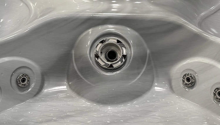 Cal Spas powerful TORNADO JETS are strategically placed to keep you in the center of the swim spa. Creating a strong current from below that is designed to help you stay afloat while swimming.